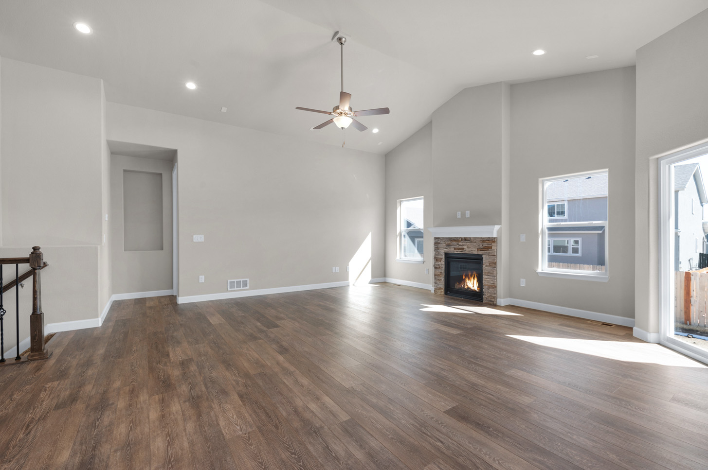 The Arlington is a modern prairie style home with a refreshing flare! It’s vaulted ceilings offer dramatic clean lines for a welcoming moment of awe! As you enter The Arlington, one senses an invitation of warmth with a grounded security and a continual flow of thoughtful design. Your home will be a space of relaxation for entertaining evenings as you cozy up to the fireplace on a Colorado evening.